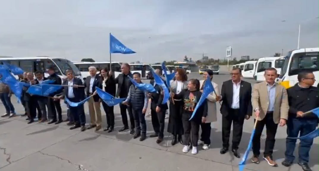 Posterior a su mensaje la alcaldesa junto con la coordinadora de transporte, empresarios e invitados especiales dieron banderazo de arranque a las 45 nuevas unidades del transporte público.