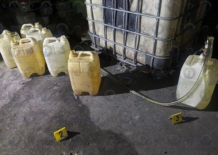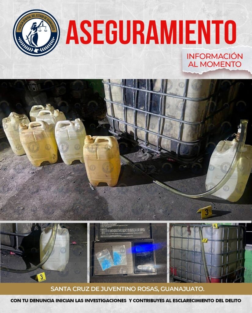 La Fiscalía General de Guanajuato informó sobre el aseguramiento de 600 litros de hidrocarburo en Juventino Rosas.