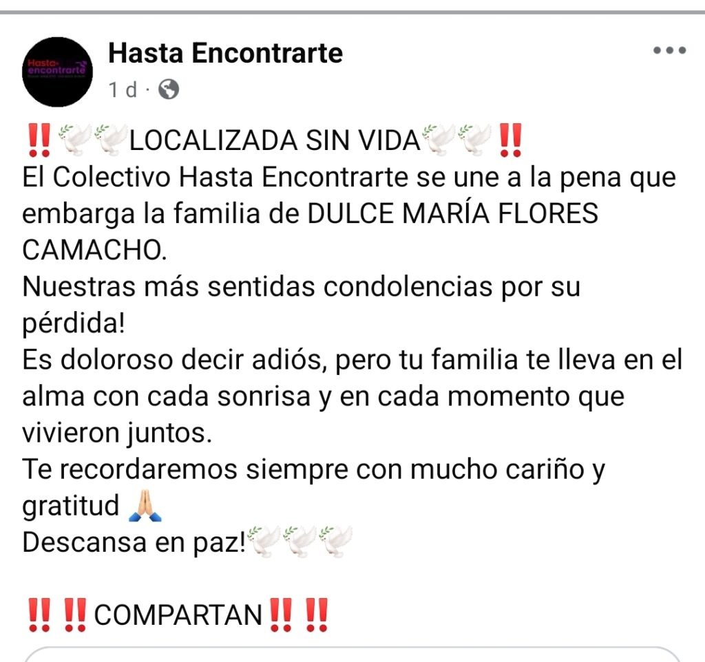El Colectivo de Búsqueda de personas desaparecidas ‘Hasta Encontrarte’ informó sobre el lamentable hallazgo.