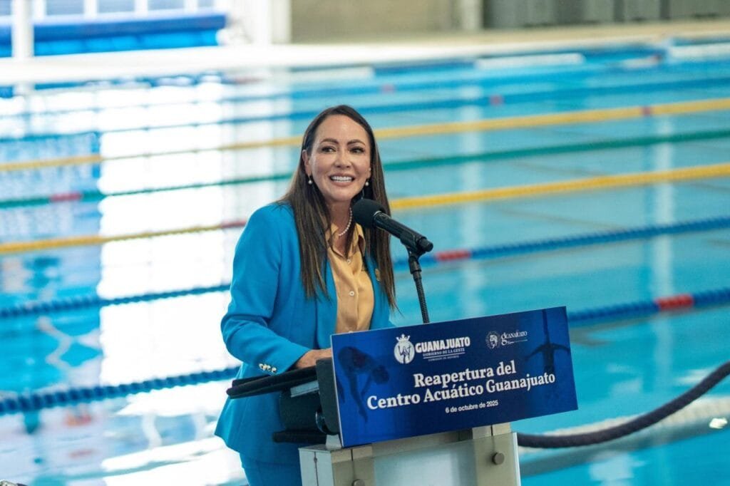 La gobernadora Libia Dennise y la alcaldesa de Guanajuato realizaron la reapertura del Centro Acuático Guanajuato, en Valenciana, donde los capitalinos y deportistas de alto rendimiento disfrutaran de éste proyecto deportivo.