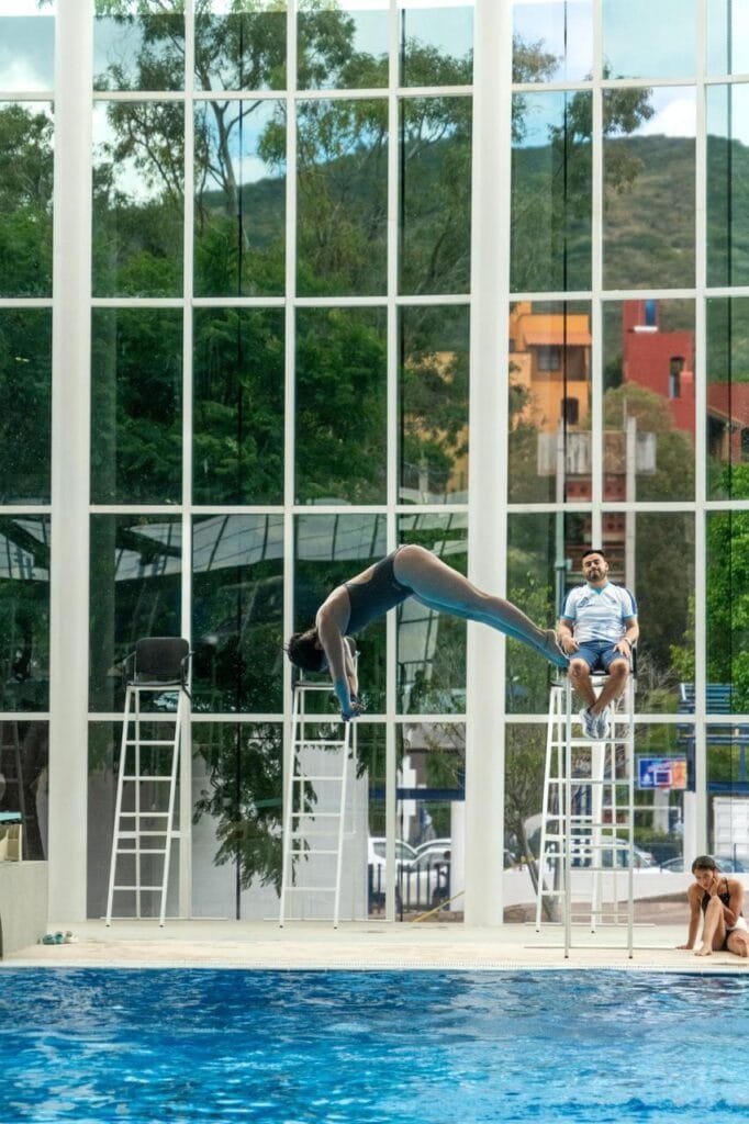Niñas y niños de la Escuelita de Clavados del Centro Acuático de León estrenaron la fosa con una muestra de su disciplina, que causó gran emoción a los presentes, sobre todo a quienes podrán utilizar esta alberca nuevamente, al igual que el resto de las instalaciones de primer nivel que se pusieron al servicio de las y los guanajuatenses.