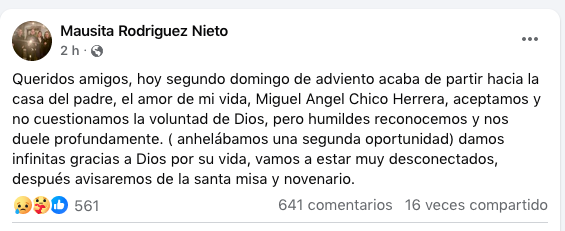 Su esposa Mausita Rodríguez informó sobre el fallecimiento del político en un emotivo mensaje en sus redes sociales.