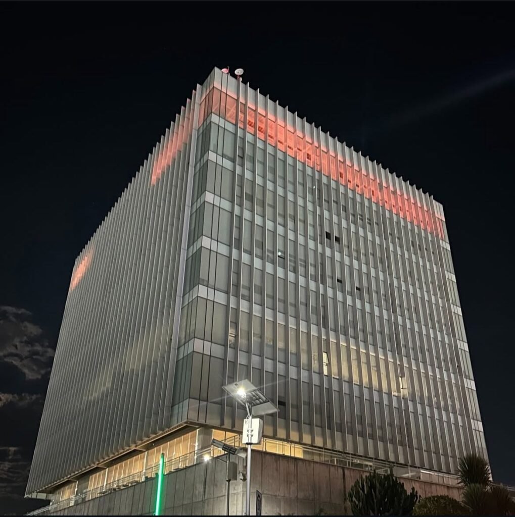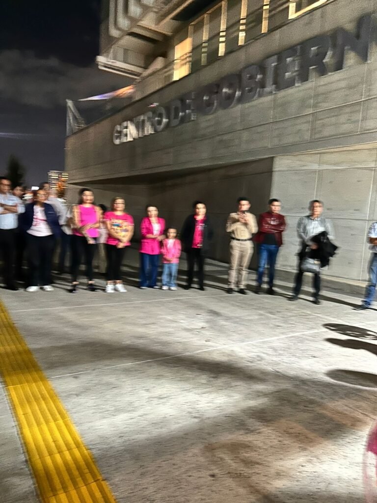 En el marco del Octubre Rosa, la Jurisdicción Sanitaria VII en el municipio de León hizo la iluminación del Centro de Gobierno de León, Guanajuato.