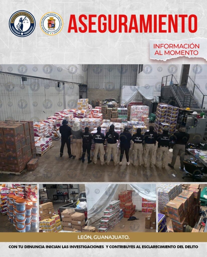 En un inmueble del Predio San Pablo, la Fiscalía de Guanajuato junto con la policía municipal de León, aseguraron mercancía robada.