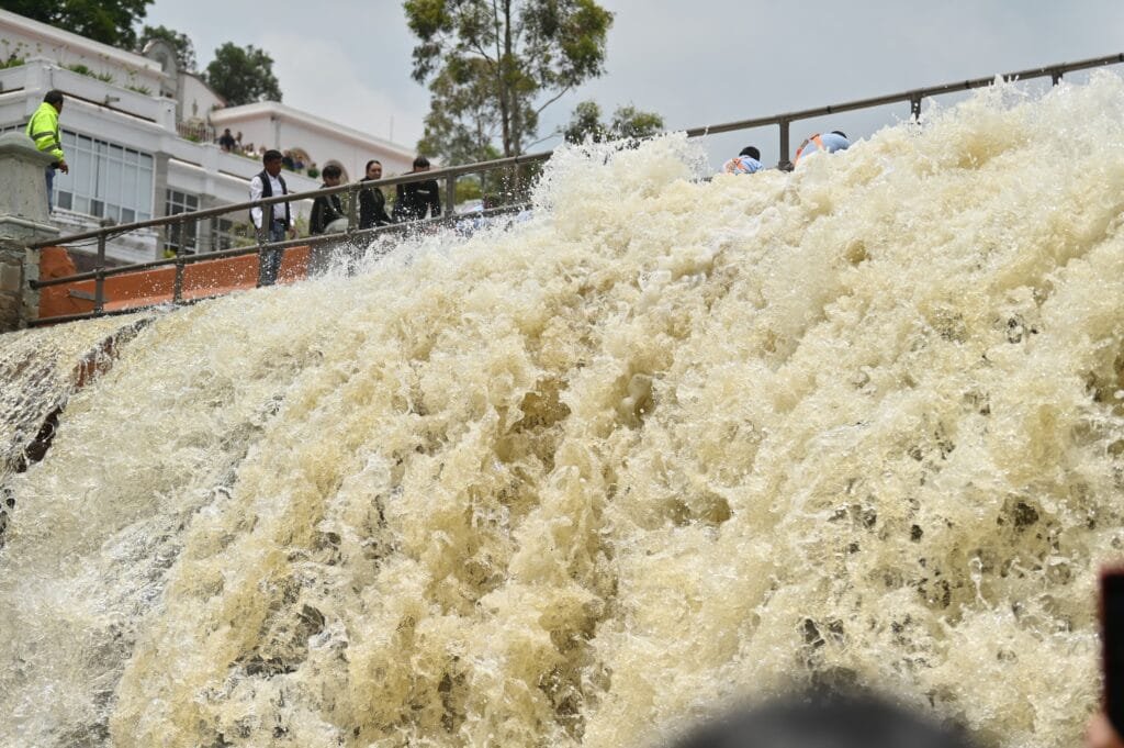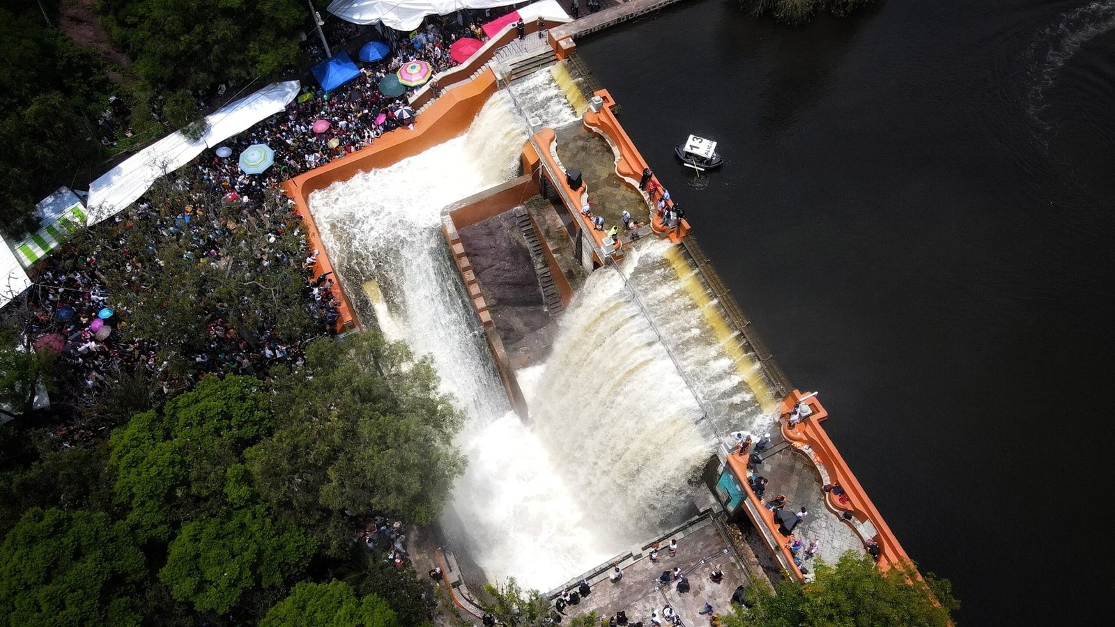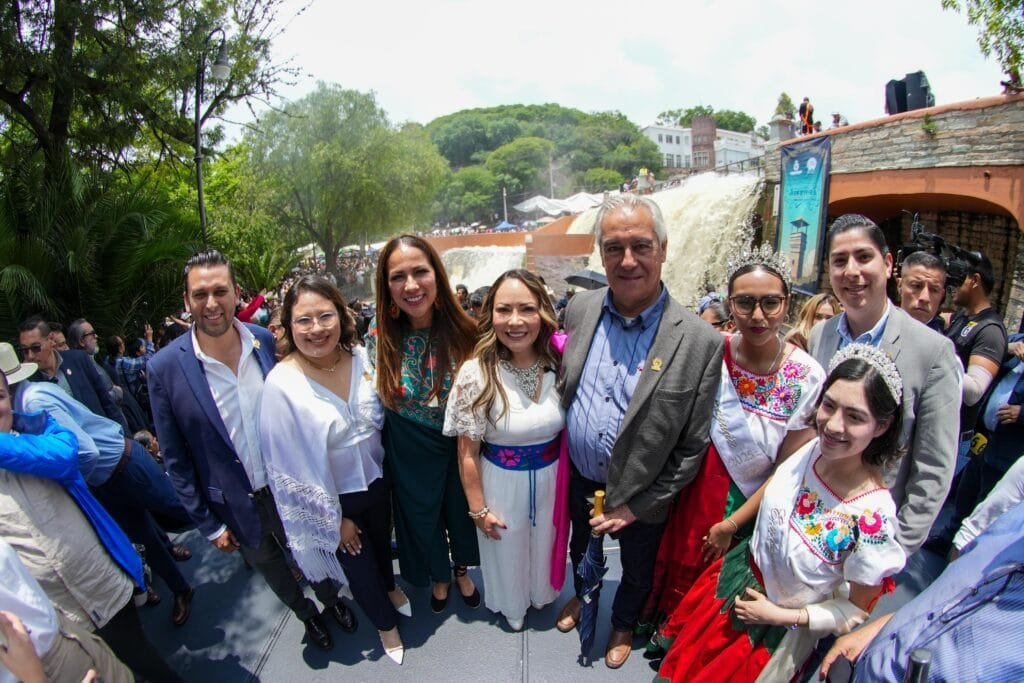 Como dicta la tradición, en punto de la 1 de la tarde, ambas mandatarias realizaron la señal con el característico pañuelo blanco, que marcó el inicio de la apertura de compuertas. Al compás del “Vals sobre las Olas” del compositor guanajuatense Juventino Rosas, el agua comenzó a correr generando una espectacular caída que fue disfrutada con emoción por más de 20 minutos.