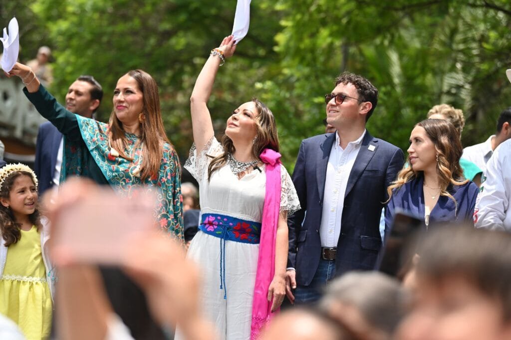 Al término de la ceremonia, la Presidenta Municipal y la Gobernadora caminaron hasta el kiosco del Jardín de las Acacias, donde convivieron con las familias asistentes, compartiendo guacamayas y aguas frescas acompañado de música en vivo que llenó el espacio de celebración.