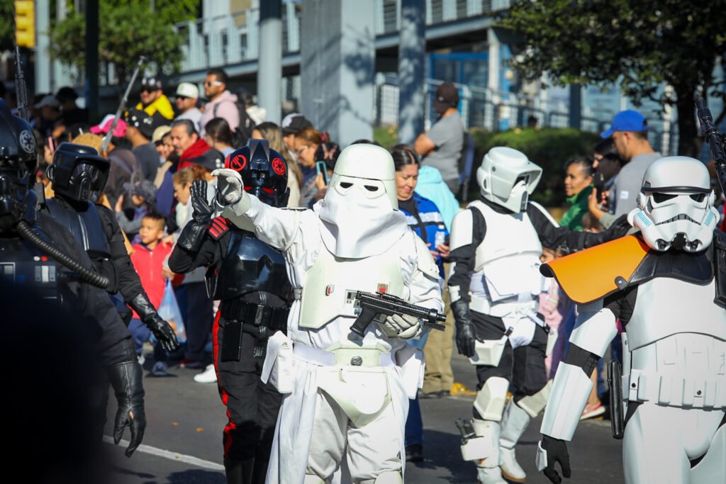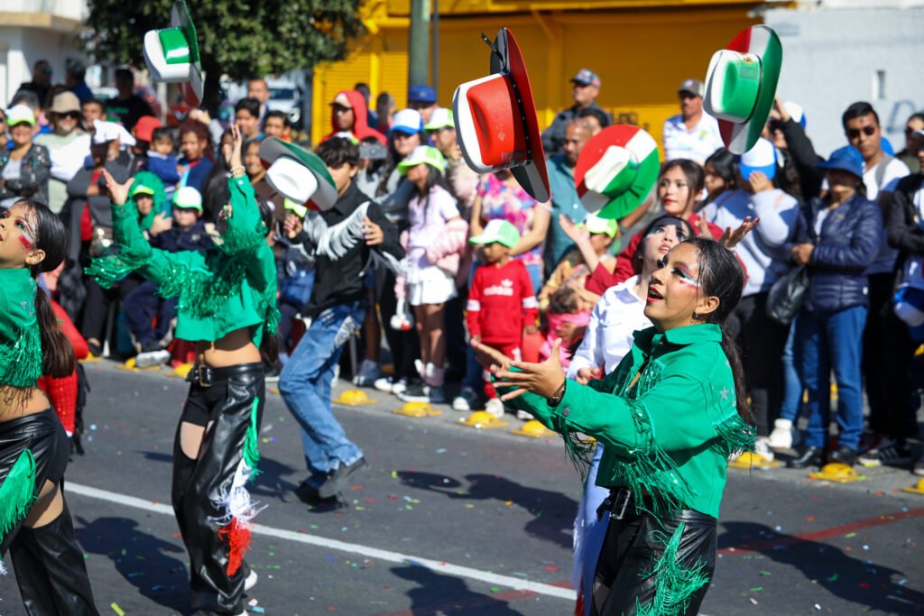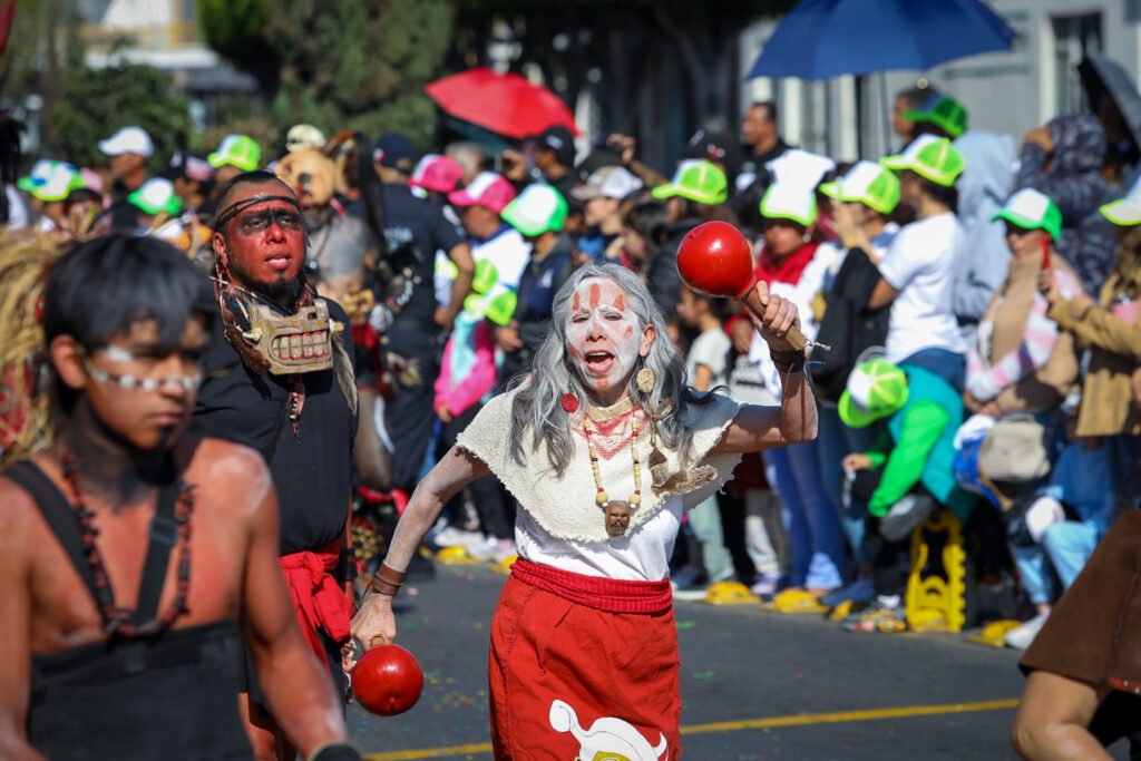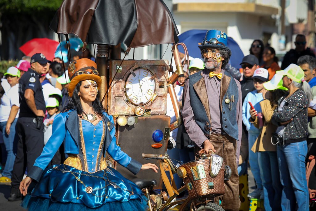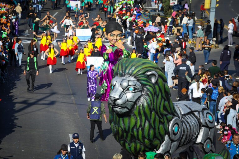 Posteriormente, “Motores del Futuro” ofreció una estampa innovadora y vibrante, con bicicletas, patinadores, danza urbana y batucada, reflejando una ciudad tecnológica y en movimiento. Este bloque incluyó un carro alegórico del Metro Elevado 450, símbolo de la movilidad hacia el futuro.