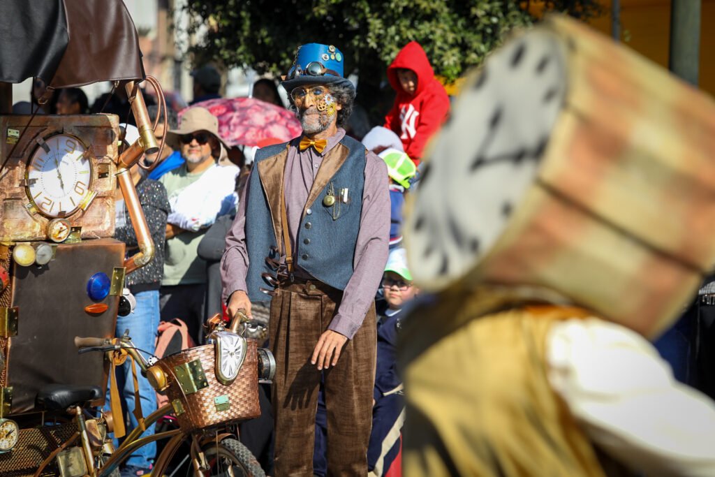 El recorrido continuó con “Animales y Juventud”, donde el cuidado del medio ambiente y la participación juvenil se reflejaron en comparsas, botargas y expresiones artísticas que arrancaron sonrisas y aplausos entre las familias asistentes.